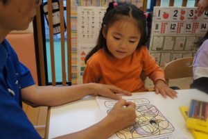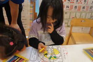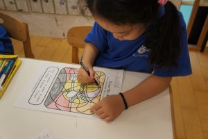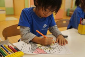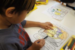 番号に書かれている色を自分たちで考えて、理解して塗り