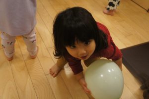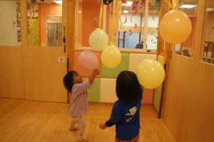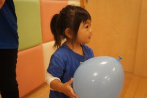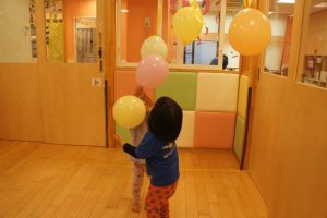 風船遊びをして遊び、好きな色の風船を膨らませて遊んでみようとしたり、