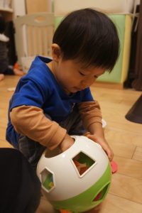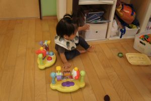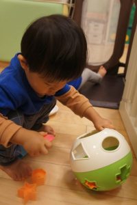 好きな玩具に触れて楽しんだり、保育者と関わりを持ちながら