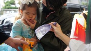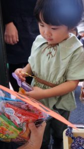 『Trick or Treat!』『thank you!』と自分たちで言葉を選びながら