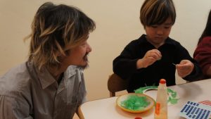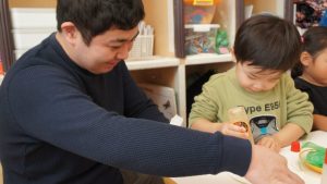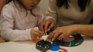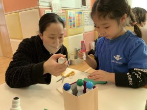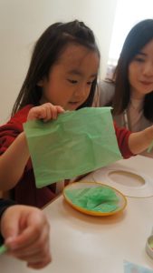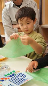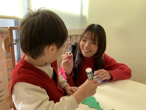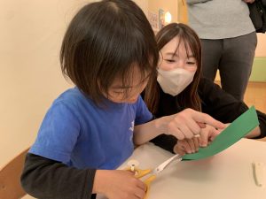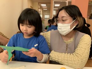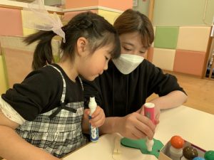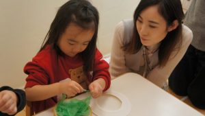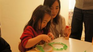 保護者の方に見守られながら行うレッスンやクラフトは少し恥ずかしく、