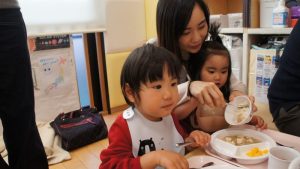 保護者の方にも召し上がっていただき、子どもたちと一緒に