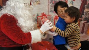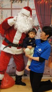 サンタクロースが中に入ってくるとタッチをしてもらったり、ハグをする児の姿も!!
