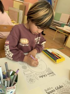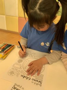 ネイティブ講師が作ったSnowGlobeを見ながら背景を描きました🎄