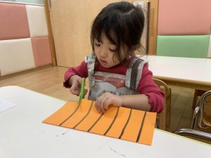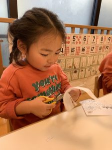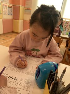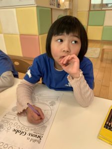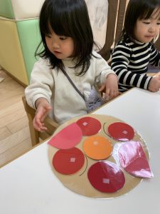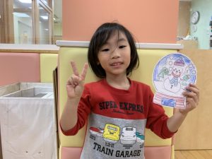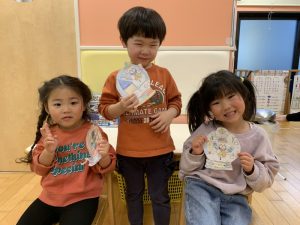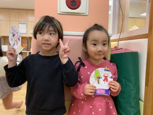 完成すると嬉しそうにお友だちと見せ合いながら喜び、