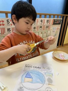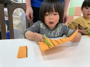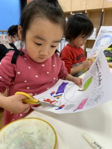 色塗りをした後にハサミで切って、糊で貼り付ける工程まで全て行い