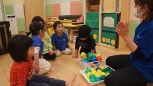 ボールの色を合わせながら色当てゲームをして遊びました🎨