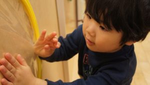 また、テープの感触を楽しむ姿も見られ、