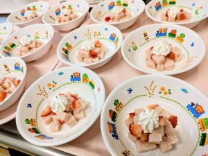 いちごババロアホイップ添え(乳アレルギー食はホイップなし)