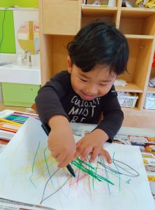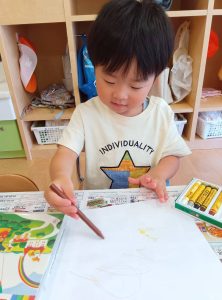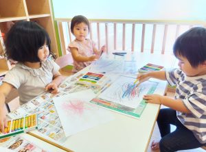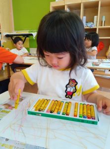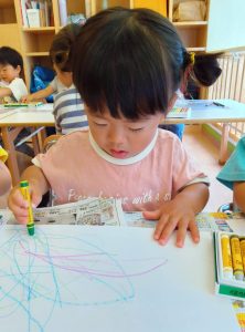 好きな色のクレヨンやクレパスを持って、楽しそうに描いていますね![]()