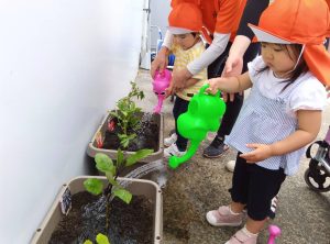 これから大きな実が生るまで、みんなで水やりを頑張ります![]()