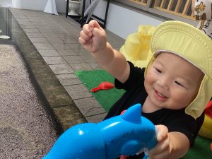 水鉄砲で嬉しそうに遊んでいますね🔫