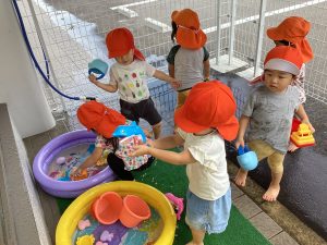 暑い日が続きますが今週も子ども達は暑さに負けず元気に水遊びをしています😎☀️