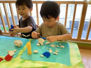 久しぶりの粘土遊びという事でワクワクの子ども達⭕️