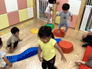 ウィープレイやマット遊び、体操カリキュラム、リトミックなどでたくさん体を動かしています😃