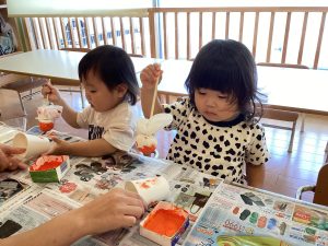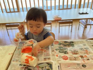 人差し指を上手に使いノリを「ぬりぬり〜」楽しく貼ってくれましたよ✨
