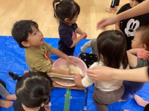 初めてパン粉遊びを行いました🎵
