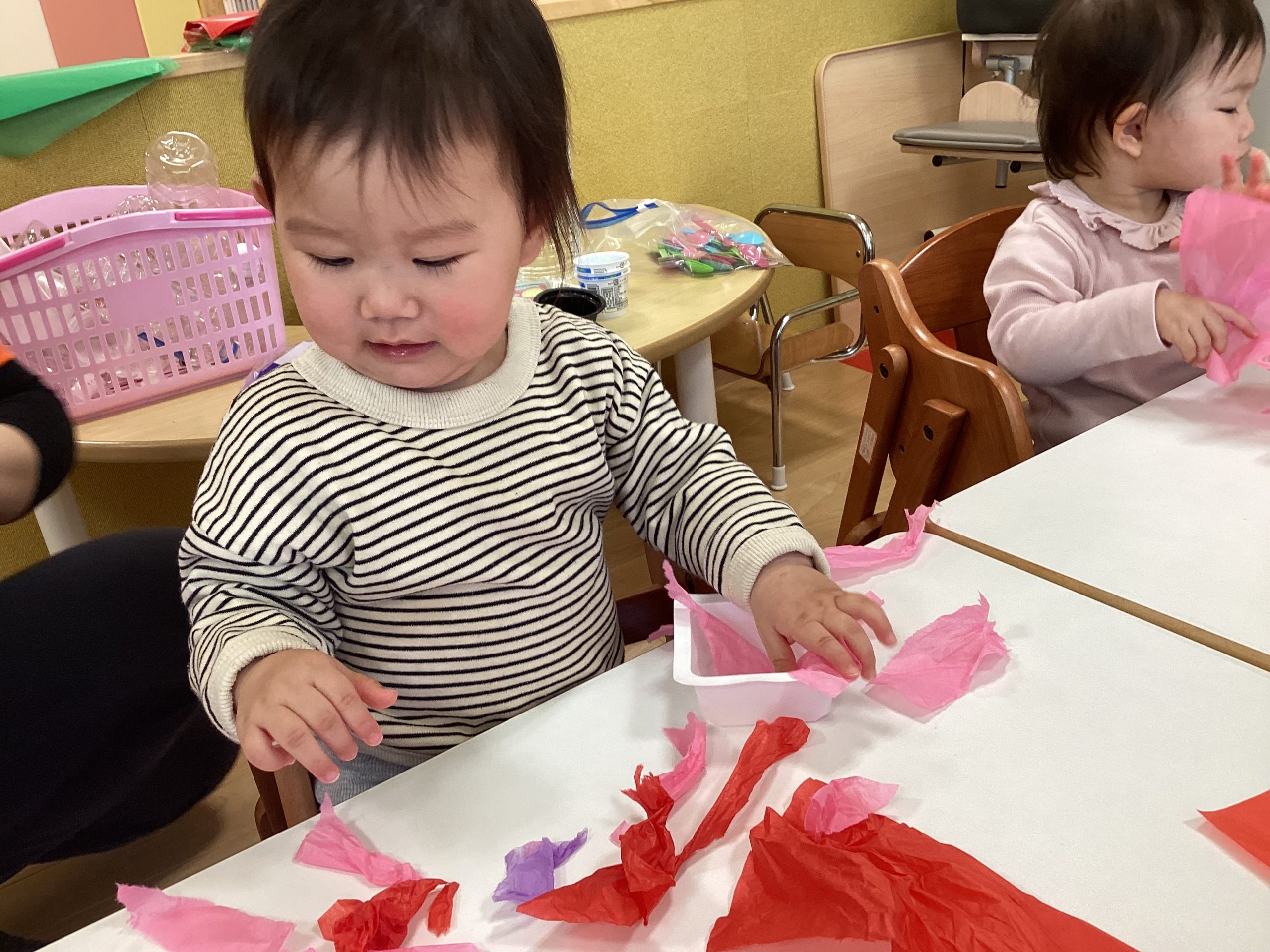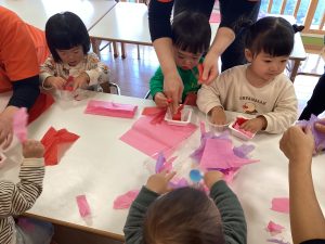お花紙をビリビリ〜🌸