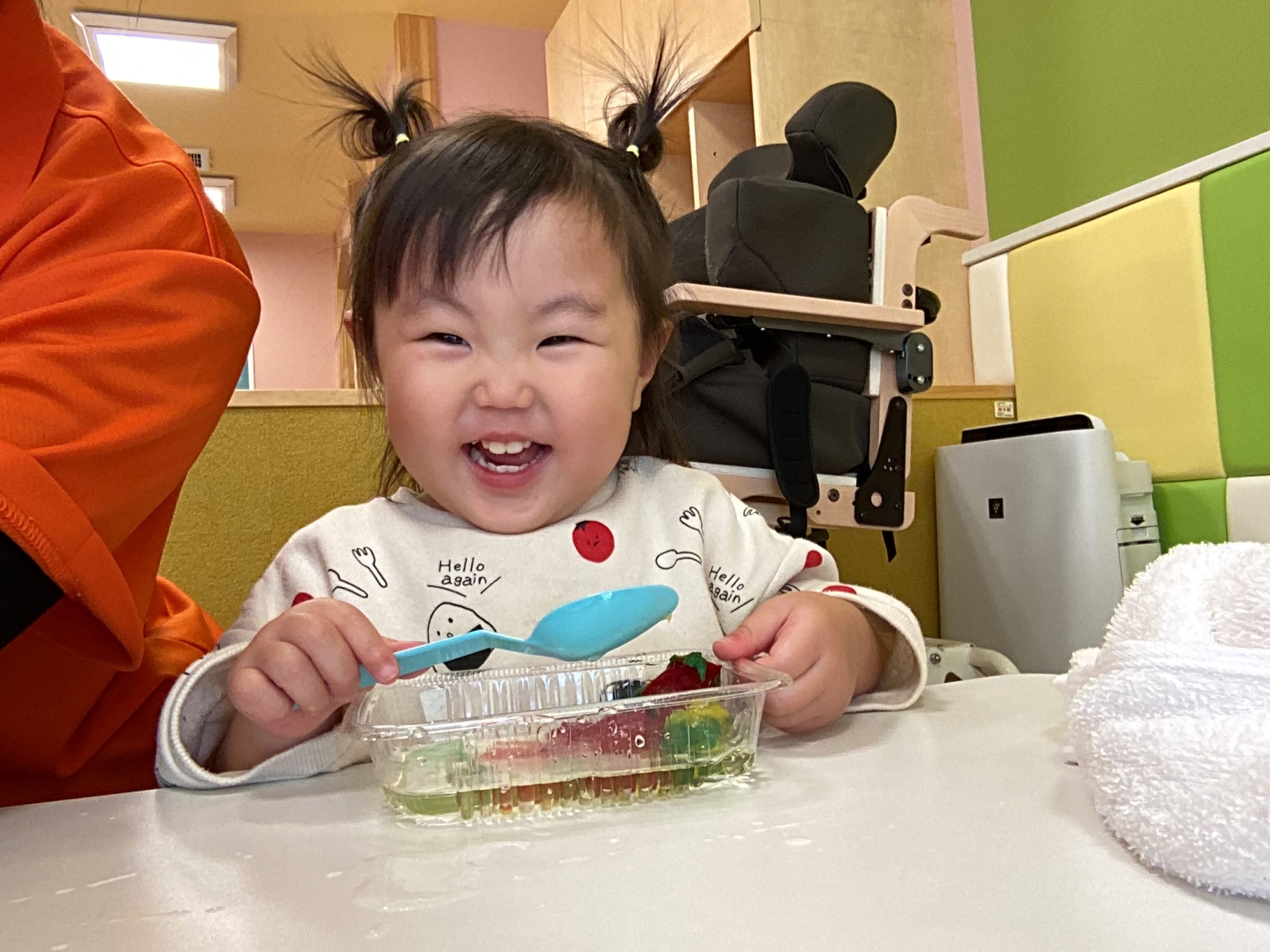 「どーぞ」と渡して貰うと「ありがとう」と上手に言えていました😊