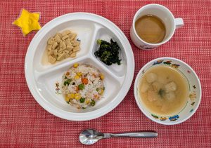 サンライズキッズ保育園 ◎給食の様子 今日の給食は、かぶの混ぜご飯です!野菜入りのご飯は彩りが良く、...