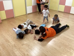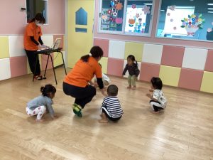次はリズム遊びです💕ピアノ🎹の音が鳴ると子どもたちは自然に体がぴょんぴょん!