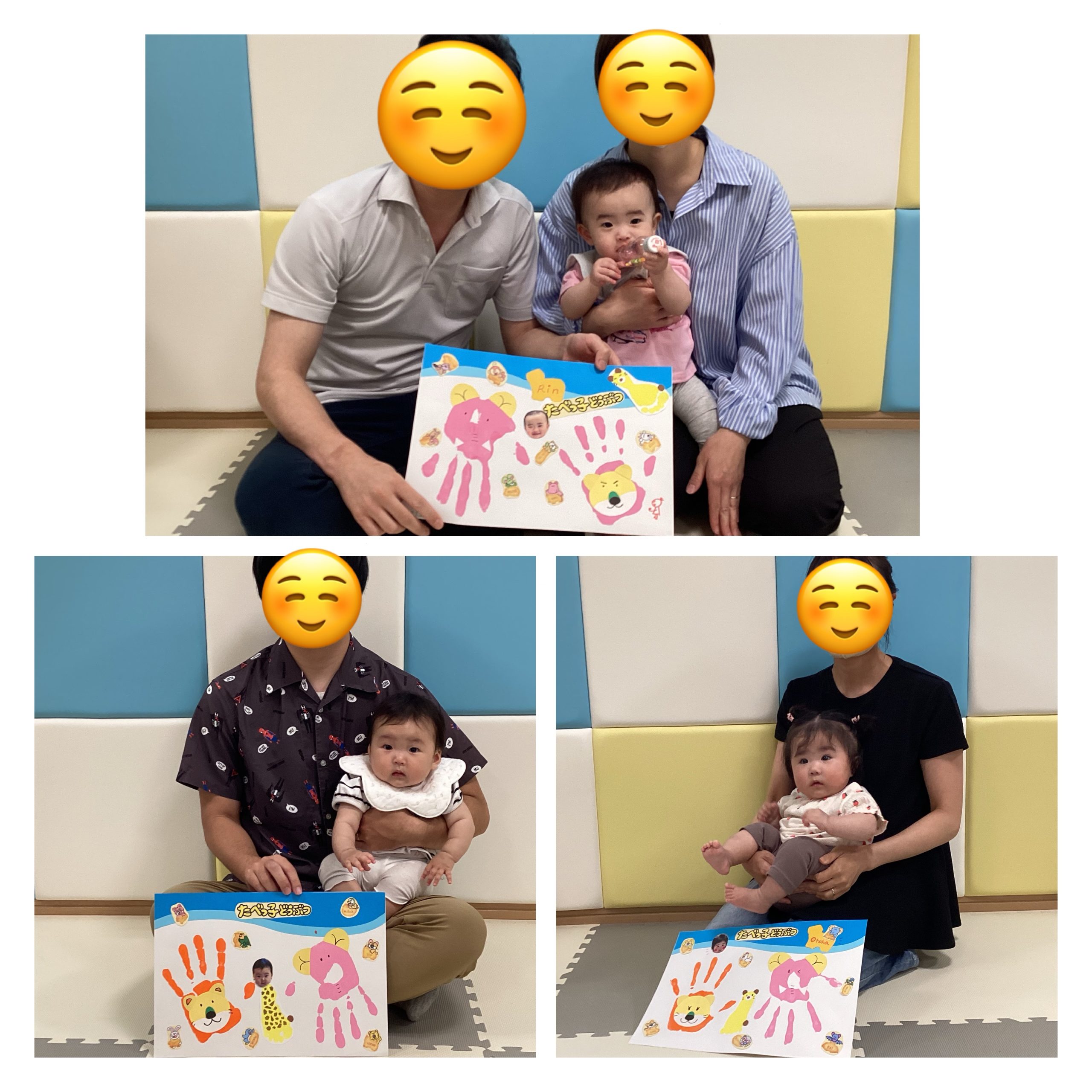 保護者の方の手型と子どもの顔を合わせて素敵な作品ができました♡
