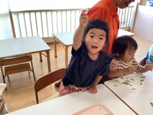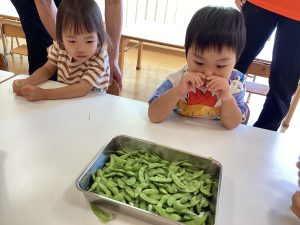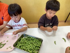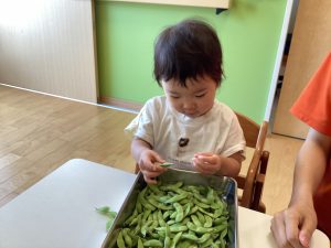 「剥いてみたい」と枝豆が硬くても必死に剥く子どもたち🥰