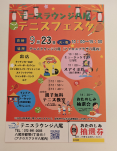 曙川園近くにあるテニスラウンジ八尾さんで、初めて開催されるイベントについてご案内をさせていただきます。