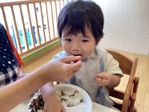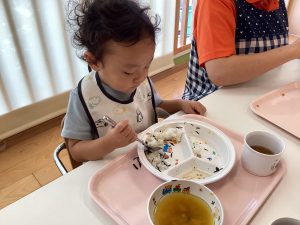スプーンを上手に使い「おいしいね」と言いながらお友だちと一緒に笑顔で食べる姿も💕