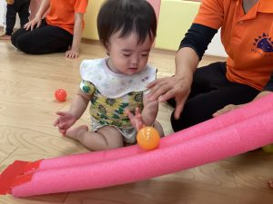 ボールを「コロコロ〜」と転がしたり、