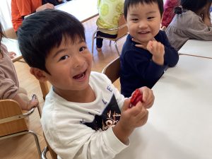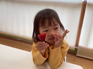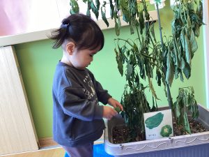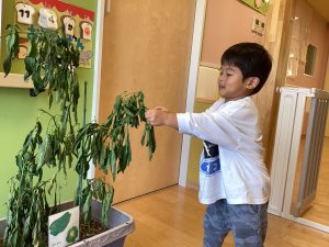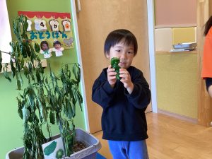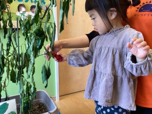 水やりをしたり、「ピーマンが出てきた」と観察をしたり成長を楽しみにしていました。