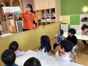 物語の中で「おにはーそと!ふくはーうち!」の場面が出て来ると子どもたちも自然と一緒にポーズを取りながら大きな声で言っている姿が可愛らしく、見ているこちらまで笑顔になります💕