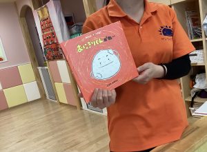 絵本が始まると同時に手を三角におにぎり🍙を握るポーズを準備しています💕