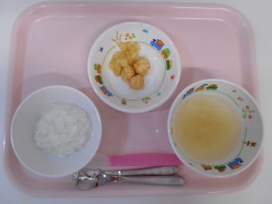 ・お粥 ・切干大根のサラダ ・クリームシチュー ・お味噌汁 ・バナナ