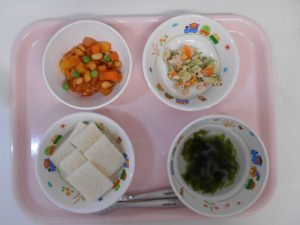 ・ご飯 ・こいのぼりバーグ ・お味噌汁 ・含め煮 ・ブロッコリー