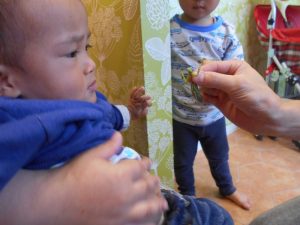 最後は皆で一緒に外に逃がしに行き「カマキリさん、バイバイ」と言ってお別れしました(*^^*)