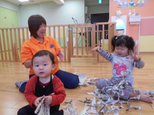 子ども達にとっては新聞紙ですら最高のおもちゃになってしまいます(^^)/