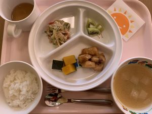 ご飯 味噌汁 魚の東煮 切り干し大根のナムル 南瓜の甘煮 キウイ