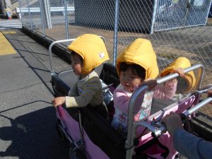 防災頭巾も上手にかぶれるようになりました(^^♪
