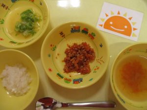 ※今日は、洋風の給食でしたがたくさん食べました。色々な食に触れ、少しずつ成長していけたら嬉しいなと思っております。