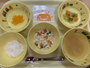 ※今日は、給食を食べることに集中して、しっかりと食べていました。2歳児クラスの子どもたちは、お茶碗や味噌汁碗を持って食べることが出来るようになってきました♪