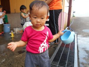 今年は梅雨が長く夏前半にほとんどできず、子ども達から「みずあそびは?」