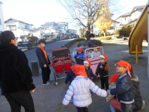 サンライズキッズ厚木園の子ども達にも、保育園にサンタさんがパズルやボールなどの