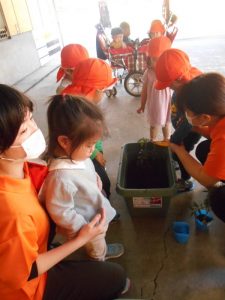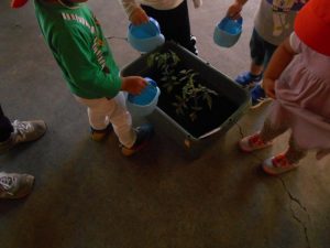 植えた後は、みんなで「おおきくなーれ」と言いながら水をあげました(*´ω`)