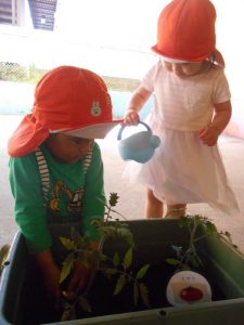 大きくなる様子をみんなで見守り、自分達で育てたトマトそ自分達で収穫して食べる?