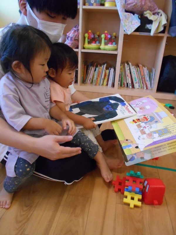 いちご組さんは自分のお気に入りの絵本を持って来て保育士に「読んで!」とリクエストしてきます♪りんご組さんは自分のロッカーから絵本を持って来てお友達と仲良く見ています(^^♪来週もたくさん絵本を読んでいきたいと思います♬