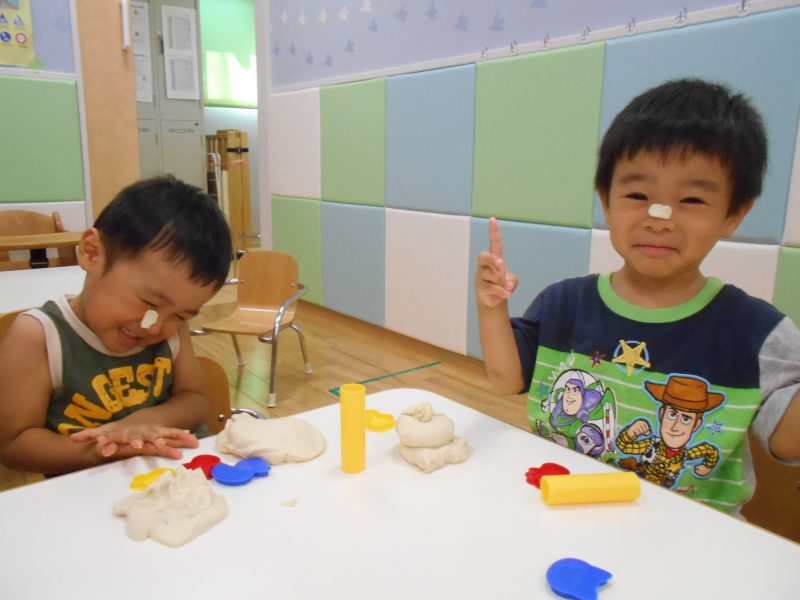 粘土であそぶお友達はどんなことをしているのかな?と見に行くと・・・