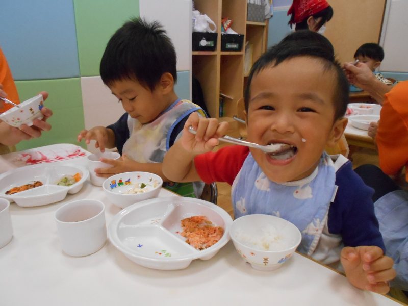 たくさん遊んだ後のお給食はみんなの楽しい時間のひとつです✰⋆。