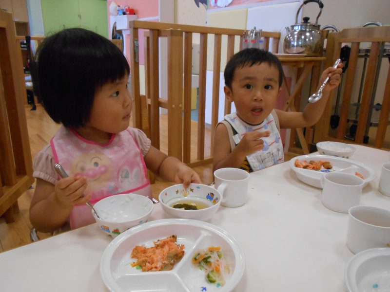 サンライズキッズ保育園では自園調理を行っており、冷たいものは冷たく、温かいものは温かく、適温調理を大切にしております✧ంః