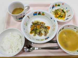 ※今日の春雨サラダは、コーンが入っているので食べやすかったのか、残さず食べてました。離乳食を食べている子も、毎日ほぼ残さずに食べています♪